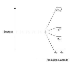 Keywords: Piramidal cuadrado.PNG es Diagrama de separación de orbitales en un campo piramidal cuadrado own J3D3 Coordination chemistry Computational chemistry Molecular orbitals energy levels