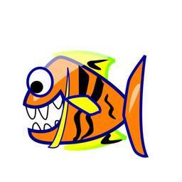 Keywords: piranha fish piraña orange stripes cartoon comic sea life animal teeth funny