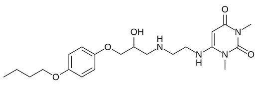 Keywords: Pirepolol.svg Chemical structure of pirepolol Own 21 30 29 March 2014 UTC Ed Edgar181 Beta blockers Phenol ethers Pyrimidinediones