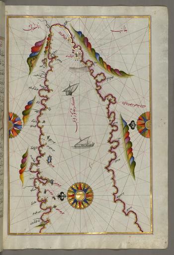 | Keywords: Piri Reis - Map of the Bay of Kerme East of Cos Island - Walters W65897B - Full Page.jpg Piri Reis - Map of the Island of Cos Off the Anatolian Coast - Walters W65895A - Full Page jpg Piri Reis - Map of Syme Island North-west of Rhodes Island - Walters W65899A - Full Page jpg rtl This folio from Walters manuscript W 658 contains a map of the Bay of Kerme east of Cos Stancho Istanköy Island late 11th century AH/AD 17th century-early 12th century AH/AD 18th century Ottoman ink and pigments on laid European paper cm 34 24 accession number W 658 97B 79739 Ahmad Afandi date and mode of acquisition unknown see folio 4a Ali Afandi date and mode of acquisiton unknown see folio 4a Sayyid Ali Qapudan date and mode of acquisition unknown see folio 1a Sultan Mahmud Khan date and mode of acquistion unknown waqf seal and followed by a bequest statement now erased and the seal of the inspector of wakfs Mustafá Tahir see folio 4a Henry Walters Baltimore date and mode of acquisition unknown Walters Art Museum Henry Walters Acquired by Henry Walters place of origin Turkey Walters Art Museum license 2D Piri Reis Kitab-ı Bahriye Walters MS 658 097B Media contributed by the Walters Art Museum needs category review |