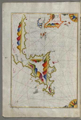 | Keywords: Piri Reis - Map of Syme Island North-west of Rhodes Island - Walters W65899A - Full Page.jpg Piri Reis - Map of the Bay of Kerme East of Cos Island - Walters W65897B - Full Page jpg Piri Reis - Map of the Northeastern Tip of Rhodes Island Facing the Anatolian Coast with the Island of Syme - Walters W658100B - Full Page jpg rtl This folio from Walters manuscript W 658 contains a map of Syme Sömbeki Island north-west of Rhodes Rodos Island late 11th century AH/AD 17th century-early 12th century AH/AD 18th century Ottoman ink and pigments on laid European paper cm 34 24 accession number W 658 99A 79740 Ahmad Afandi date and mode of acquisition unknown see folio 4a Ali Afandi date and mode of acquisiton unknown see folio 4a Sayyid Ali Qapudan date and mode of acquisition unknown see folio 1a Sultan Mahmud Khan date and mode of acquistion unknown waqf seal and followed by a bequest statement now erased and the seal of the inspector of wakfs Mustafá Tahir see folio 4a Henry Walters Baltimore date and mode of acquisition unknown Walters Art Museum Henry Walters Acquired by Henry Walters place of origin Turkey Walters Art Museum license 2D Piri Reis Kitab-ı Bahriye Walters MS 658 099A Media contributed by the Walters Art Museum needs category review |