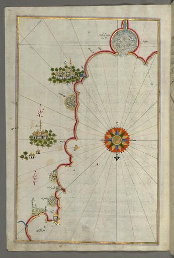 Keywords: Piri Reis - Map of the "Syrian Coast" and the Cities - Gaza and Ramlah - Walters W658312A - Full Page.jpg This folio from Walters manuscript W 658 contains a map of the Syrian coast and the cities Gaza Ghazzah and Ramlah present-day Gaza strip belonging to the Palestinian Authority late 11th century AH/AD 17th century-early 12th century AH/AD 18th century Ottoman ink and pigments on laid European paper cm 34 24 accession number W 658 312A 79888 Ahmad Afandi date and mode of acquisition unknown see folio 4a Ali Afandi date and mode of acquisiton unknown see folio 4a Sayyid Ali Qapudan date and mode of acquisition unknown see folio 1a Sultan Mahmud Khan date and mode of acquistion unknown waqf seal and followed by a bequest statement now erased and the seal of the inspector of wakfs Mustafá Tahir see folio 4a Henry Walters Baltimore date and mode of acquisition unknown Walters Art Museum Henry Walters Acquired by Henry Walters place of origin Turkey Walters Art Museum license 2D Piri Reis Kitab-ı Bahriye Walters MS 658 Media contributed by the Walters Art Museum needs category review |