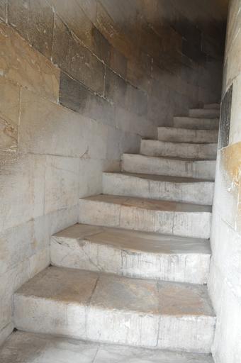 | Keywords: Note the wear pattern in the steps. It moves back and forth between the outside and inside of the spiral steps depending on which side of the lean you are on. When you are on the high side of the tower the wear pattern is in the inside of the spiral. When you are on the low side the tracks are on the outside of the spiral. Note the wear pattern in the steps. It moves back and forth between the outside and inside of the spiral steps depending on which side of the lean you are on. When you are on the high side of the tower the wear pattern is in the inside of the spiral. When you are on the low side the tracks are on the outside of the spiral. |
