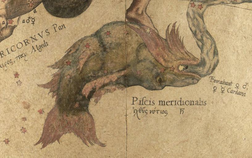 | Keywords: Piscis Austrinus - Mercator.jpeg Piscis_Austrinus constellation from the Mercator celestial globe The Mercator Globes at Harvard Map Collection http //hcl harvard edu/mercatorglobes/ 1551 Gerard Mercator 1512-1594 PD-old-100 Mercator celestial globe Piscis Austrinus Maps by Gerardus Mercator |