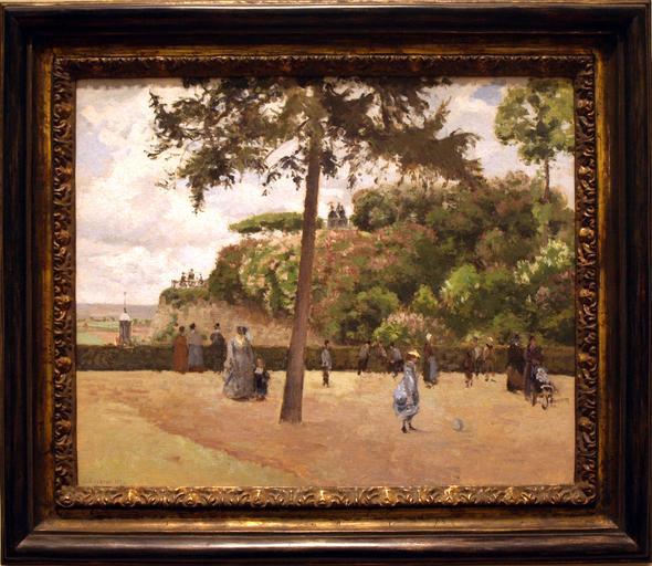 | Keywords: Pissarro - The Public Garden at Pontoise.JPG Artwork Creator Camille Pissarro The Public Garden at Pontoise 1874 Oil on canvas Size cm 60 73 Institution Metropolitan Museum of Art Not on view 2015-02 object history exhibition history credit line Gift of Mr and Mrs Arthur Murray 1964 accession number 64 156 place of creation painting of Pissarro own photo PD-Art-100 La Jardin de la Ville Pontoise 1874 | ||||