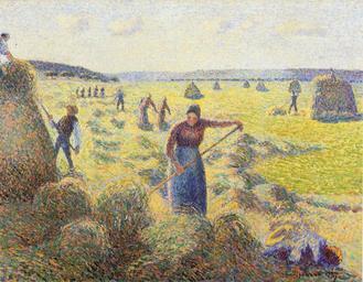 Keywords: Pissarro recolte-des-foins.jpg en La Récolte des Foins Eragny oil on canvas 51 x 66 cm repro from art book creator Camille Pissarro 1887 PD-old-100 Paintings of peasants by Camille Pissarro 1887 paintings by Camille Pissarro