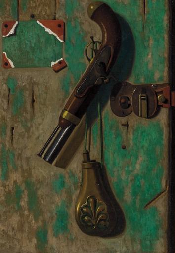 | Keywords: 'Pistol, Gate Latch, and Powder Horn' by John Frederick Peto, c. 1887.jpg en Pistol Gate Latch and Powder Horn by John Frederick Peto c 1887 oil on canvas 14 25 x 10 inches Shannon's Fine Art Milford Connecticut John Frederick Peto ~ 1887 PD-old-auto 1907 DEFAULTSORT Peto John Frederick John Frederick Peto Percussion pistols Powder horns | ||||