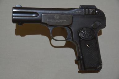 Keywords: pistol gun handgun weapon firearm protection security trigger defense revolver shoot military caliber steel metal browning war gray close dangerous