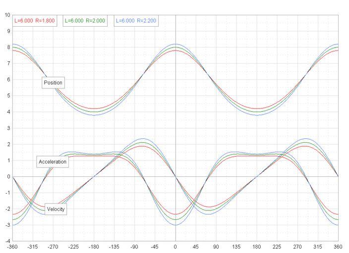 Keywords: Piston motion graphs.png Graphs showing piston motion for various half strokes for an internal combustion engine joecar 18 11 17 May 2006 UTC 2006-05-17 own assumed Joecar Automotive technologies Pistons