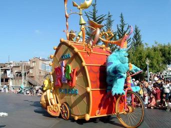 Keywords: Pixar Play Parade.JPG en Title float for the Pixar Play Parade Own SolarSurfer Disney California Adventure Park Monsters Inc