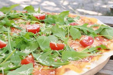 Keywords: pizza eating healthy kitchen food dinner arugula cooking
