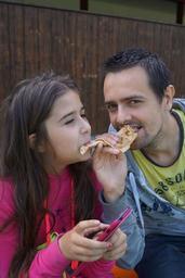 Keywords: pizza fun mobile phone happiness food time father child daughter game love children advertising photo free