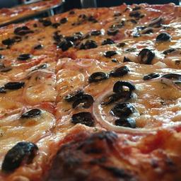 Keywords: pizza onions cheese italian meal delicious dinner food sauce vegetable mozzarella cuisine homemade lunch fresh tasty tomato basil crust slice