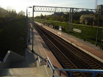 Keywords: PKP Warszawa Żwirki i Wigury.jpg pl stacja Warszawa Żwirki i Wigury own MatiOmlet 2009-04-21 Warszawa Żwirki i Wigury railway station Train station platforms in Warsaw