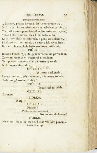 | Keywords: PL Aleksander Fredro-Komedye t.1 087.jpeg en dramaty pl dramas http //polona pl/dlibra/doccontent2 id 191 Cyfrowa Biblioteka Narodowa Creator Aleksander Fredro Komedye Series title I Pichler Pichker 1826 Vienna pl PD-old-100 Komedye t 1 Aleksander Fredro |