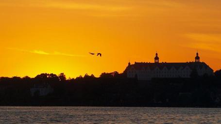 Keywords: plön castle sun sunset mood germany light back light