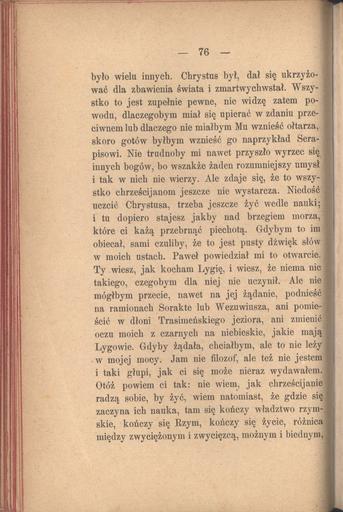 | Keywords: PL Henryk Sienkiewicz-Quo vadis t.2 086.jpeg novel powieść http //www polona pl/dlibra/doccontent2 id 353 dirids 1 Cyfrowa Biblioteka Narodowa Creator Henryk Sienkiewicz Quo vadis powieść z czasów Nerona Series title II Gebethner i Wolff W L Anczyc i Spółka 1896 Warszawa pl PD-old Quo vadis t 2 Henryk Sienkiewicz |