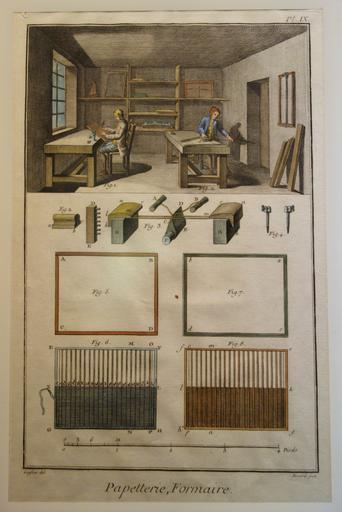 | Keywords: Pl. IX, Papetterie, Formaire, Diderot's Encyclopedia, c. 1760 - Robert C. Williams Paper Museum - DSC00457.JPG en Exhibit in the Robert C Williams Paper Museum Atlanta Georgia USA This work is old enough so that it is in the public domain Photography was permitted in the museum without restriction 2014-03-20 13 23 18 own Daderot PD-old-100 cc-zero Robert C Williams Paper Museum Uploaded with UploadWizard Encyclopédie ou Dictionnaire raisonné des sciences des arts et des métiers volume 4 other versions |