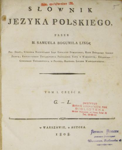 Keywords: PL Linde-Slownik Jezyka Polskiego T.1 Cz.2 G-L 002.jpg Linde Samuel Bogumił - Słownik języka polskiego 2 001 003 PD-old-100-1923 Linde Samuel Bogumił - Słownik języka polskiego T 1 Cz 2 002