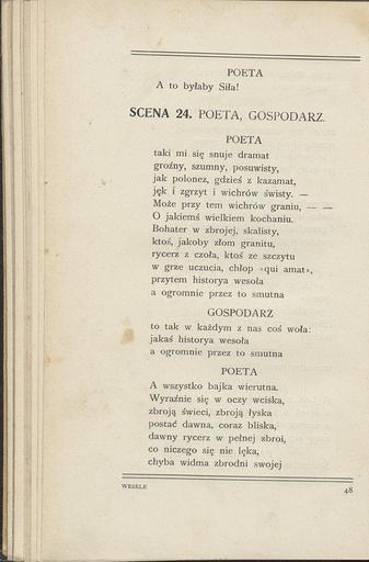 Keywords: PL Stanisław Wyspiański-Wesele 050.jpeg en drama pl dramat http //www polona pl/dlibra/doccontent2 id 556 dirids 1 Biblioteka Cyfrowa Creator Stanisław Wyspiański Wesele Dramat w 3 aktach Series title Stanisław Wyspiański Drukarnia Uniwersytetu Jagiellońskiego 1901 Kraków pl PD-old-100 Wesele Wyspiański |