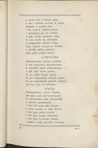 | Keywords: PL Stanisław Wyspiański-Wesele 051.jpeg en drama pl dramat http //www polona pl/dlibra/doccontent2 id 556 dirids 1 Biblioteka Cyfrowa Creator Stanisław Wyspiański Wesele Dramat w 3 aktach Series title Stanisław Wyspiański Drukarnia Uniwersytetu Jagiellońskiego 1901 Kraków pl PD-old-100 Wesele Wyspiański |