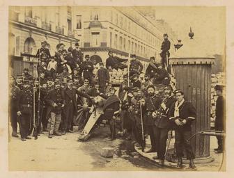 | Keywords: Place Vendôme (Group of Federated Soldiers near the Barricade in the Rue Castiglione) WDL1274.png Artwork ru Б аквейе Б уно 1823 1875 гг fr Braquehais Bruno 1823-1875 en Braquehais Bruno 1823-1875 zh 布鲁诺·布拉奇海 ,1823-1875 年 pt Braquehais Bruno 1823-1875 ar براكهيه برونو، 1823-1875 es Braquehais Bruno 1823-1875 ru Вандомская площадь г уппа солдат-феде атов около ба икады на улице Кастильоне fr Place Vendôme groupe de soldats fédérés auprès de la barricade de la rue de Castiglione en Place Vendôme Group of Federated Soldiers near the Barricade in the Rue Castiglione zh 旺多姆广 (卡斯堤拉恩街防御工事附近的联邦士兵队伍) pt Praça Vendôme grupo de soldados federados próximo à barricada em Rue Castiglione ar ميدان فندوم مجموعة من جنود الاتحاد بالقرب من المتراس الموجود في شارع كاستيليون ru П ичиной ф анко-п усской войны стал ост нап яженности в отношениях между Ф анцией и П уссией в 1860-х гг Ф анция п и импе ато е аполеоне III была полна ешимости п ове ить астущую силу П уссии и отомстить за то что она ассмат ивала как яд дипломатических унижений П уссия п и канцле е Отто фон Бисма ке считала что война ге манских госуда ств п отив Ф анции под уководством П уссии станет ешающим шагом к созданию единой Ге манской импе ии Конфликт начался 19 июля 1870 г когда Ф анция объявила войну Ф анцузская а мия оказалась ужасно неподготовленной и поте пела сок ушительное по ажение в битве п и Седане отк ыв до огу на Па иж К 19 сентяб я немцкие войска полностью ок ужили го од и начали осаду кото ая п одлилась более четы ех месяцев От езанные от поставок п одовольствия из сельской местности па ижане пытались выжить питаясь собаками кошками и даже животными из па ижского зоопа ка Де евья на Елисейских полях и в па ках были вы ублены и использованы в качестве топлива 5 янва я немецкие войска начали бомба ди овку го ода кото ая п одолжалась по несколько часов каждую ночь в течение 23 суток а ок естности Па ижа было сб ошено около 12 000 сна ядов кото ые убили около 400 человек Па иж сдался 28 янва я в сущности положив конец войне За по ажением ф анцузов последовало на одное восстание и установление в а те 1871г Па ижской коммуны еволюционного п авительства сфо ми ованного в соответствии с ана хистскими и социалистическими п инципами Коммуна была жестоко подавлена в мае 1871 г ф анцузскими войсками п авительства Адольфа Тье а Во в емя неп одолжительного конт оля над Па ижем коммуна ы аз ушали импе ато скую колонну на Вандомской площади Подавление коммуны п ивело к дальнейшим значительным аз ушениям в го оде когда коммуна ы подожгли дво ец Тюиль и Лув и д угие здания К оме того многие здания пост адали или были аз ушены во в емя отчаянной пе ест елки между коммуна ами и конт еволюционными силами Siege de Paris 1870 1871 Осада Па ижа 1870 1871 гг п едставляет собой альбом из 110 фотог афий сделанных Огюстом Б уно Б аквейе 1823 1875 гг ф анцузским фотог афом и п ог ессивным фотожу налистом документи овавшим осаду и последствия бомба ди овок а также аз ушения п оизошедшие во в емя Па ижской коммуны <br>Ба икады; Ф анко-п усская война 1870 1871 гг ; Память ми а; Вандомская площадь Па иж Ф анция ; Площади; Улица Кастильоне Па иж Ф анция ; Солдаты fr La guerre franco-allemande fut provoquée par l escalade des tensions entre la France et la Prusse dans les années 1860 La France sous l empereur Napoléon III était déterminée à contenir la croissance de la puissance prussienne et à venger ce qui était considéré comme une série d humiliations diplomatiques La Prusse sous le chancelier Otto von Bismarck considérait qu une guerre dirigée par la Prusse et menée par les États allemands contre la France serait un acte décisif menant à la création d un empire allemand unifié Le conflit débuta le 19 juillet 1870 jour où la France déclara la guerre L armée française s avéra terriblement mal préparée et subit une défaite désastreuse lors de la bataille de Sedan laissant la voie libre vers Paris