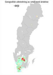 Keywords: PlaceNameSuffix arp.svg en Thematic maps of place names own Temakartor 2010-05-31 Maps of place names of Sweden