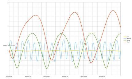| Keywords: Planet distances.svg en The distances in AU between Earth and the other inner planets and the Sun for 2012 “2017 Created with LibreOffice Calc using data from http //www fourmilab ch/solar/solar html 2014-11-12 own Jao other versions cc-zero Uploaded with UploadWizard Uncategorized 2014 November 12 |