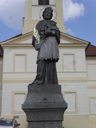 Keywords: Plánice - Jan Nepomucký u radnice.JPG cs Fotografie Plánické radnice own Qwertz0451 8 července 2013 Cc-zero Statues in Klatovy District Statues of John of Nepomuk in Klatovy District Town hall in Plánice Náměstí Plánice John of Nepomuk with fur mozzetta |
