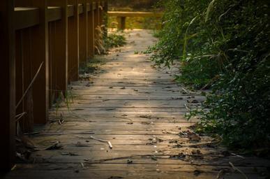 Keywords: plank bridge sunshine grassland autumn
