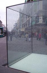 Keywords: Planken Mannheim Kitzbihler-Mahnmal.jpg central street Planken of Mannheim in Germany 2006-02-25 own Immanuel Giel Glaskubus Mannheim