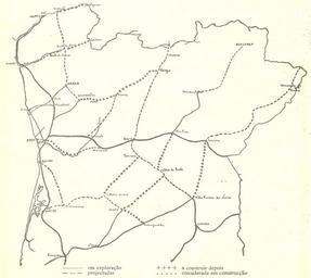 | Keywords: Plano da Rede Ferroviaria Complementar ao Norte do Mondego.jpg pt Mapa relativo aos projectos ferroviários complementares à Rede Ferroviária ao Norte do Mondego em Portugal decretada em 15 de Fevereiro de 1900 Entre os troços planeados estava a Linha do Alto Minho de Braga a Melgaço por Ponte da Barca e Monção; a Linha do Vale do Lima de Viana do Castelo ao Lindoso por Ponte da Barca; a Linha de Braga a Guimarães; a continuação da Linha de Guimarães até Vidago por Fafe e Cavez; a Linha do Tâmega de Livração a Cavez; a Linha Marginal do Douro de Rio Tinto a Mosteirô; a Linha do Corgo da Régua à fronteira pelo Vidago e por Chaves; a continuação da Linha do Tua de Mirandela até Bragança; a Linha do Sabor do Pocinho até à fronteira por Miranda do Douro; a Linha do Côa do Pocinho a Vila Franca das Naves; a Linha da Régua a Vila Franca das Naves com passagem por Tarouca e Vila da Ponte onde se cruzaria com a Linha de Foz Tua a Viseu; a Linha do Vouga de Espinho a Viseu com ramais para Aveiro Tarouca e Mangualde; a Linha de Circunvalação do Porto futura Linha de Leixões ; e o prolongamento do Ramal da Alfândega até Leixões Esta imagem foi publicada na Gazeta dos Caminhos de Ferro n º 372 de 16 de Junho de 1903 e digitalizada pela Hemeroteca Municipal de Lisboa en Map of the complementary projects of the Rede Ferroviaria ao Norte do Mondego Railway Network on North of the Mondego River in Portugal decreted on the 15th February 1900 Among the projects there was the Alto Minho railway from Braga to Melgaço via Ponte da Barca and Monção; the Vale do Lima Railway from Viana do Castelo to Lindoso via Ponte da Barca; the Braga to Guimarães Railway; the continuation of the Guimarães Railway to Vidago via Fafe and Cavez; the Tâmega Railway from Livração to Cavez; the Douro Marginal Railway that would connect Rio Tinto to Mosteirô; the Corgo Railway from Peso da Régua to the Spanish border serving Vidago and Chaves; the continuation of the Tua Railway from Mirandela to Braganza; the Sabor Railway from Pocinho to the border via Miranda do Douro; the Côa Railway also from Pocinho to Vila Franca das Naves; the Régua to Vila Franca das Naves railway passing Tarouca and Vila da Ponte where it would cross with the Foz Tua do Viseu Railway; the Vouga Railway from Viseu to Espinho with branches to Aveiro Tarouca and Mangualde; the Leixões Railway; and the continuation of the Alfândega branch to Leixões This image was published on the Gazeta dos Caminhos de Ferro magazine no 372 of the 16th June 1903 and scanned by the Hemeroteca Municipal de Lisboa Esta imagem foi publicada na Gazeta dos Caminhos de Ferro n º 372 de 16 de Junho de 1903 e digitalizada pela Hemeroteca Municipal de Lisboa 1903-06-16 http //hemerotecadigital cm-lisboa pt/OBRAS/GazetaCF/1903/N372/N372_item1/P3 html author other versions Custom license marker 2015 02 11 Anonymous-EU Uploaded with UploadWizard 1903 in rail transport in Portugal Gazeta dos Caminhos de Ferro Vol 16 1903 Rail transport maps of Portugal Linha do Vale do Lima Linha de Guimarães Linha do Tâmega Linha do Corgo Linha do Tua Linha do Sabor Linha do Vouga Ramal de Aveiro Linha de Leixões Ramal da Alfândega Images from the Hemeroteca Municipal de Lisboa |