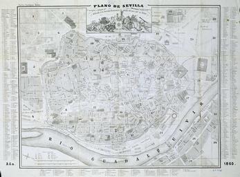 | Keywords: Plano de Sevilla 1860.jpeg en Incluye a ambos lados relación de calles y situación en el plano y en la parte inferior relación de edificios e iglesias más notables Escala expresada también en varas castellanas Orientado con flecha con el N al NO del plano http //bibliotecadigitalhispanica bne es/R/VR3MKDF3VTPFK68MYUKEU4BAXPBRJ3PDFY8KCTYLL6XRY2LQ2R-03208 func results-jump-full set_entry 000192 set_number 000259 base GEN01 Biblioteca Digital Hispánica Álvarez-Benavides y López Manuel Santigosa Carlos ed 1860 Old maps of Seville 1860 in Andalusia Seville in the 19th century PD-old |