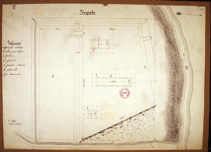 | Keywords: Plano Fuerte Negrete (hecho por Jose Miguel Faez y encontrado en Archivo Nacional) base de reconstruccion de Negrete, 12-12-1861, como una fortificación española, parte del plan de Cornelio Saavedra de Ocupacion Araucania, al Sur del rio Bio-Bio.jpg en Map of Fort Negrete made by Jose Miguel Faez and found in the National Archives of Chile base plane reconstruction Negrete December 12 1861 as a Chilean fort part of the plan of military occupation and incorporation of the town Mapuche who lived south of the Bio-Bio river the river was for centuries considered the boundary or natural boundary agreed in the various treaties or parliaments between Spain and the Mapuche people and even in the last parliament of Tapihue 1825 between Chile and the Mapuche people A program designed and executed by Colonel Cornelio Saavedra Rodriguez during the presidency of Jose Joaquin Perez Mascayano in the context of the beginning of the Occupation of Araucanía euphemistically misnamed Pacification of Araucanía in the final stage of the War of Arauco involving the incorporation of Mapuche territory to the Chilean state and the reduction of the Mapuche people by the Army of the Republic of Chile where Cornelio Saavedra served as Inspector General Gregory Urrutia Venegas as Commander in Chief of the Army of Occupation of Arauco es Plano del Fuerte de Negrete hecho por José Miguel Fáez y encontrado en el Archivo Nacional de Chile plano base de reconstrucción de Negrete el 12 de Diciembre de 1861 como una fortificación chilena parte del plan de ocupación militar e incorporación del pueblo Mapuche que vivía al sur del río Bio-Bio río que fue durante siglos considerado La Frontera o limite natural acordada en los distintos tratados o parlamentos entre España y el pueblo Mapuche e incluso en el último Parlamento de Tapihue de 1825 entre Chile y el pueblo Mapuche Plan ideado y ejecutado por el coronel Cornelio Saavedra Rodríguez durante la presidencia de José Joaquín Pérez Mascayano en el contexto del inicio de la Ocupación de la Araucanía eufemísticamente mal llamada Pacificación de la Araucanía en la etapa final de la guerra de Arauco que implicó la incorporación del territorio mapuche al estado chileno y la reducción del pueblo Mapuche por parte del Ejercito de la República de Chile en que Cornelio Saavedra participó como Inspector General y Gregorio Urrutia Venegas como Comandante en Jefe del Ejército de Ocupación de Arauco own Vsaezh 1861-12-12 Negrete |