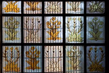Keywords: plant flowers orange yellow stained glass lead leaded glass gothic old antique church bristol england