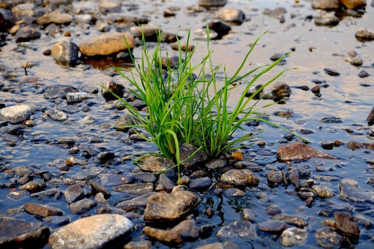 Keywords: plant green plant green nature leaf drop of water close leaves drip water blossom bloom summer wet rhine water level pebble stones grow