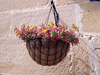 Keywords: plant pot flowerpot plant trim pendant hang flower flowers pots sow garden planting nature seed aromatic first leaves agriculture potted plant green coconut brown stone wall white ocher pink stick pink string
