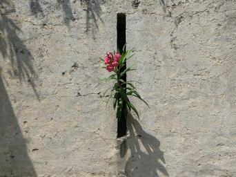 Keywords: plant stone red color nature alone rock wall corsica summer sun lonely bloom contrast