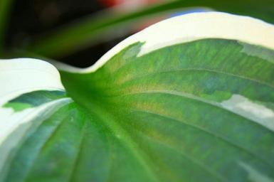 Keywords: plantain lily hosta minute man leaf variegated foliage leaves ribbed green cream photosynthesis macro