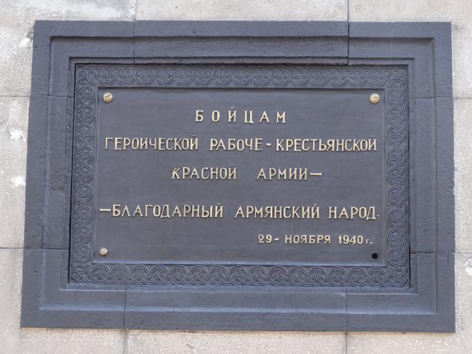 Keywords: Plaque at memorial column in Children's Park Yerevan 2.JPG en Plaque at memorial column in Children's Park Yerevan Armenia 2015-01-04 15 15 46 own Aschroet other versions other fields 1 inscription inscription БОЙЦА <br />ГЕРОИЧЕСКОЙ РАБОЧЕ-КРЕСТЬЯ СКОЙ<br />КРАС ОЙ АР ИИ -<br />- БЛАГОДАР ЫЙ АР Я СКИЙ АРОД <br /><small>29- ОЯБРЯ 1940 г </small> ru 40 176501388889 44 507349722222 heading 108 75 cc-zero Uploaded with UploadWizard World War II memorials in Armenia |