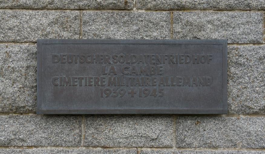| Keywords: Plaque La Cambe Calvados.jpg en Plaque at the entrance of the german war cemetery La Cambe Calvados Normandy France fr Plaque à l'entrée du cimetière militaire allemand de La Cambe Calvados 2015-05-01 17 37 07 own Jebulon other versions 49 343048 -1 026679 cc-zero Uploaded with UploadWizard Deutscher Soldatenfriedhof La Cambe Plaques in Calvados Bronze plaques Quality images by Jebulon Bilingual plaques in France QualityImage | ||||