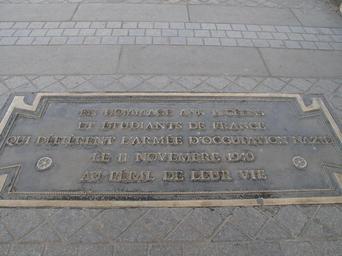 | Keywords: Plaque manifestation des étudiants du 11 novembre 1940.jpg en Plaque in memory of the demonstration of the students on november 11 1940 It was the first annivesary of the armistice of 1918 during the occupation of Paris by the nazis This plaque is on the ground near the grave of the Unknown Soldier at the Arc de Triomphe de l'Étoile in Paris fr Plaque commémorant la manifestation des étudiants du 11 novembre 1940 pour le premier anniversaire de l'Armistice de 1918 pendant l'occupation nazie Près de la tombe du soldat inconnu à l'Arc de Triomphe de l'Étoile de Paris own Tangopaso 2011-05-16 48 52 25 42 N 2 17 41 84 E region FR_heading WNW Tomb of the Unknown Soldier in Paris Plaques in Paris 8e arrondissement Metal plaques in Paris Plaques referencing 1940 Demonstration by students in Paris 11 November 1940 Plaques commemorating the French Resistance Bronze plaques |
