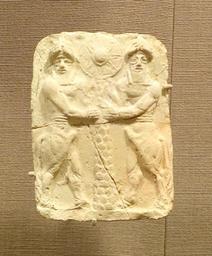 | Keywords: Plaque with bull-men holding a palm trunk with sun disk, Ishchali, Isin-Larsa to Old Babylonian, 2000-1600 BC, baked clay - Oriental Institute Museum, University of Chicago - DSC07390.JPG en Exhibit in the Oriental Institute Museum University of Chicago Chicago Illinois USA This work is old enough so that it is in the public domain Photography was permitted in the museum without restriction 2014-08-22 15 11 55 own Daderot other versions cc-zero Isin-Larsa ceramics in the Oriental Institute Museum Uploaded with UploadWizard |