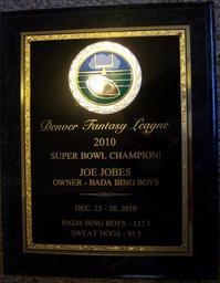 Keywords: Plaquedfl2010.jpg en DFL super bowl winners plaque 2010 plaque manufactured in whole by Personal Touch Engraving Lakewood CO 2010-10-31 own Tripingbily511 cc-zero Fantasy football
