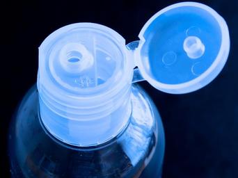 Keywords: plastic bottle transparent light blue lid open