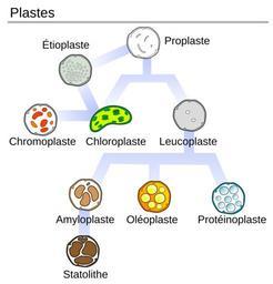 | Keywords: Plastids types-fr.svg Plastids are responsible for photosynthesis storage of products like starch and for the synthesis of many classes of molecules such as fatty acids and terpenes which are needed as cellular building blocks and/or for the function of the plant Les plastes sont responsables de la photosynthèse du stockage de substances comme l'amidon et de la synthèse de différentes molécules telles que les acides gras et les terpènes French translation of Image Plastids types svg from LadyofHats Mariana Ruiz Villarreal 2007-10-10 SuperManu Other versions/Plastids types Inkscape Atelier graphique Translation possible LadyofHats Cell diagrams Plastids |