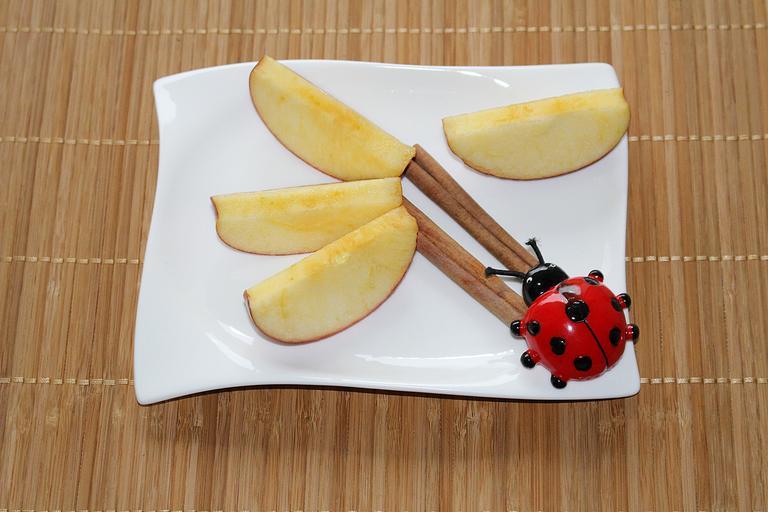 Keywords: plate decoration apple slices cinnamon ladybug