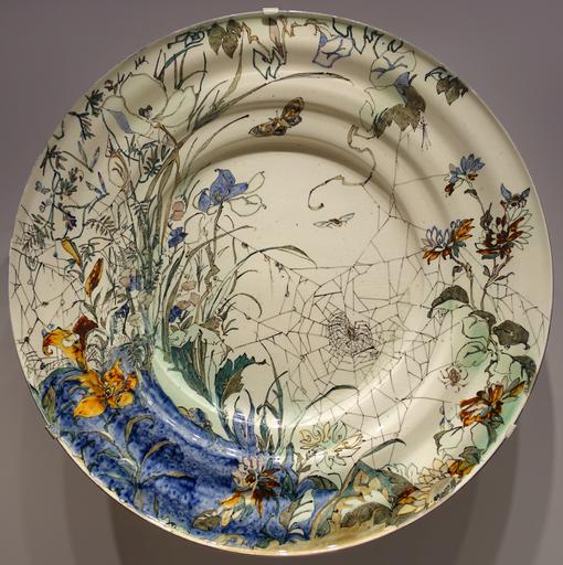 | Keywords: Plate with Spiderweb, Plant, and Insect Design, J. C. Heitz, made by Rozenburg Plateelfabriek, The Hague, Netherlands, 1892, lead-glazed earthenware - Busch-Reisinger Museum, Harvard University - DSC01217.jpg en Exhibit in the Busch-Reisinger Museum Harvard University Cambridge Massachusetts USA This artwork is in the public domain because the artist died more than 70 years ago 2015-04-11 11 56 46 own Daderot other versions PD-old-70 cc-zero Ceramics in the Busch-Reisinger Museum Haagsche Plateelbakkerij Rozenburg |