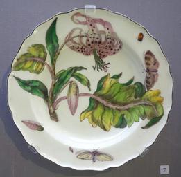 | Keywords: Plate with tiger lily, Chelsea, c. 1755, soft-paste porcelain - California Palace of the Legion of Honor - DSC07613.JPG en Exhibit in the California Palace of the Legion of Honor San Francisco California USA Photography was permitted in the museum without restriction This work is old enough so that it is in the public domain 2013-11-21 14 57 02 own Daderot other versions cc-zero Chelsea porcelain in the California Palace of the Legion of Honor Uploaded with UploadWizard | ||||