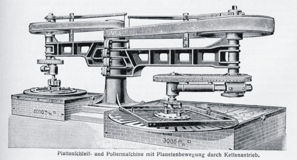 Keywords: Plattenschleif- und poliermaschine.jpg de Plattenschleif- und Poliermaschine Otto Lueger Lexikon der gesamten Technik und ihrer Hilfswissenschaften 8 Band 2 Aufl Stuttgart Leipzig Deutsche Verlagsanstalt 1904-1910 author printed 1904-1910 PD-old Stone industries |